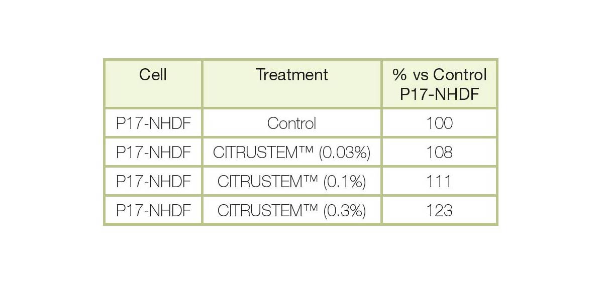 Stimulates proliferation of fibroblasts by more than 120%. A fibroblast is a cell that contributes to the formation of connective tissue. As a result, collagen synthesis and other key elements in the extracellular matrix are increased.
